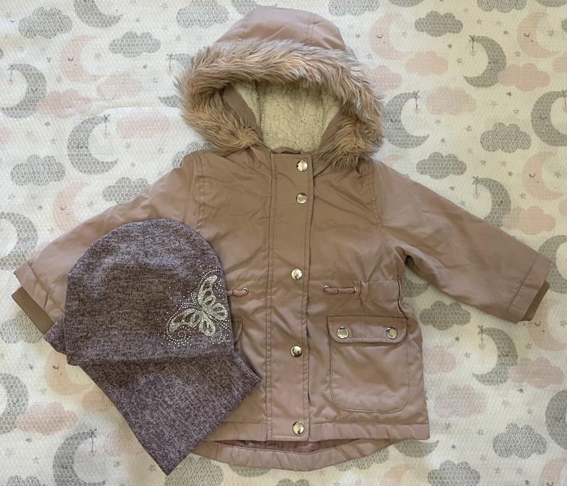 Парка в отличном состоянии, без повреждений. Цвет - бледно розовый, пудровый Размер 74 Шапка с хомутом Все замеры на фото.