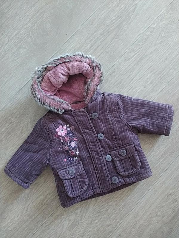 Куточка з пудрово-фіолетового вельвету.В ідеальному стані.На синтепоні і всередині з теплим м'яким хутром.Бирку на жаль відпорола,але це куртка або Next або h&m.Дуже м'яка,тепла і зручна.