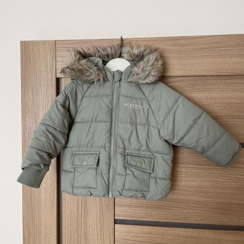 Размер 6-9 месяцев, идеальное состояние Мех не снимается, утепление синтепон Длина - 30см, длина рукава от шеи - 29см, с манжетом - 31см. Полуобхват груди - 31см.