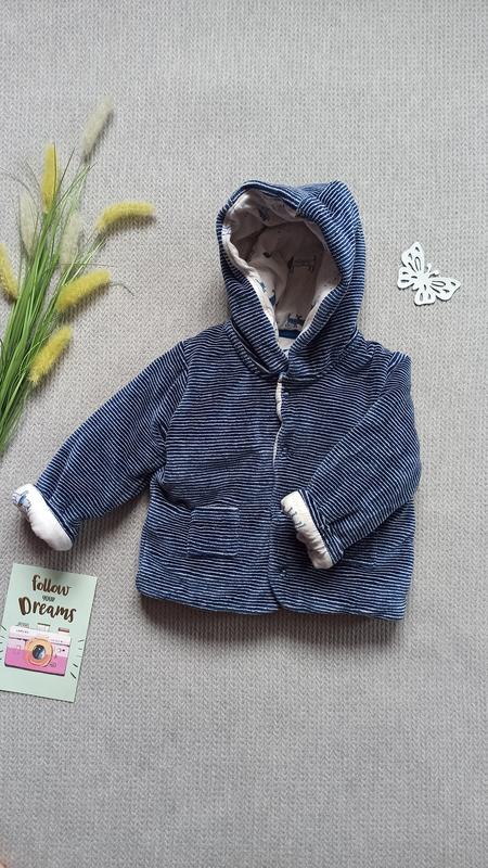 Детская велюровая демисезонная курточка 3-6 мес m&s куртка с капюшоном для мальчика