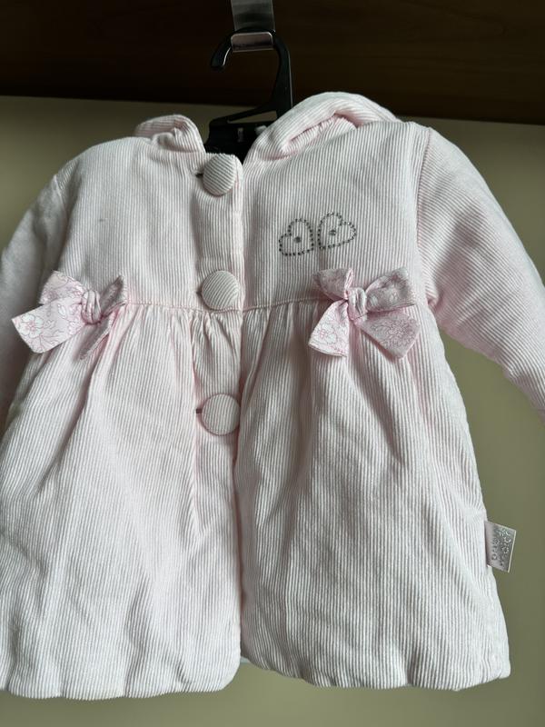 Пальто в рубчик для красавицы нежно розового цвета, по барке 3 месяца, но будет до 6-7 месяцев