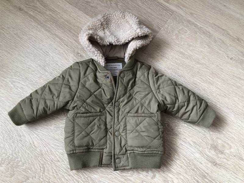 Куртка бомбер на кнопках Стан - идеальный Размер указан 3-6 месяцев, но может быть и дольше Длина 31 Пог 30 Рукав от горла 28