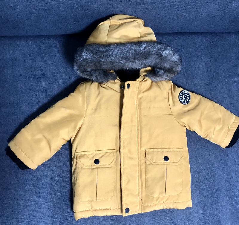 Очень теплая куртка на мальчика, состояние отлично. Размер 3-6 мес., замеры на фото