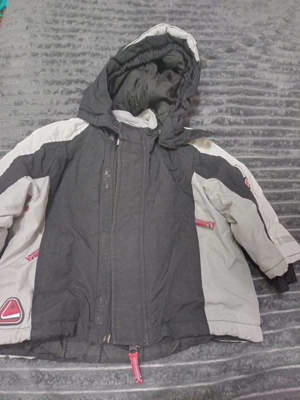 возраст - 1-1.5. состояние идеальное.застежки работают, на рукавах есть перчатки с отверстиям для большого пальца, защита от ветра на спине, двойной капюшон. Полуобхват груди 41 см Длина рукава 30 см, вместе с черным рукавчиком 33 см. Длина куртки 39 см.