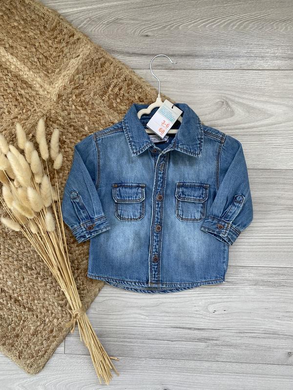 Крутая джинсовая рубашка на возраст 3-6 месяцев, будет немного длиннее,новая с этикеткой, можна носить вместо легкой джинсовой курточки