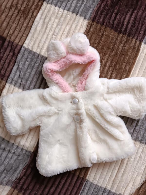 Красивая накидка шубка молочного цвета 0-3 мес в идеальном состоянии, можно брать на крещения в более холодное время, мягкий мех, застежки пуговицы