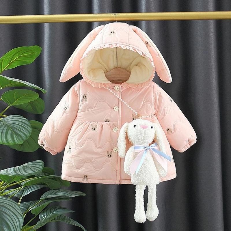 Пальто весна/осень/деми верх полиэстер утеплювач синтепон (тонкий шар) подклад микроплюш застегивается на пуговицы есть капюшон іграшка зайченя в комплекті Замеры: р.80 - длина 35 см, ширина 30 см, плечи 23 см, рукав от плеча 26 см р.90 - длина 37 см, ширина 33 см, плечи 25 см, рукав от плеча 28 см р.100 - длина 40 см, ширина 35 см, плечи 26 см, рукав от плеча 31 см р.110 - длина 44 см, ширина 36 см, плечи 27 см, рукав от плеча 33 см 8