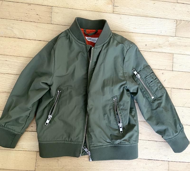 Бомбер HM, ветронепроницаемый, красиво держит форму, приятная ткань. Немного оверсайз.