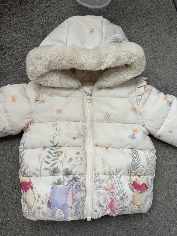 Курточка бренда George от Disney размер указан 0-3 мес, но подойдет и на 4-5 мес. Состояние - идеальный. Очень пухлая и теплая. Рукавчик закрывается и открывается.