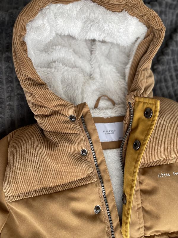 Курточка на теплую осень или зиму от Reserved. Хорошее состояние, есть незначительный недостаток, который показала на фото (стерта кнопка). 86 размер