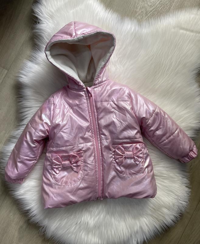 Красива перламутрова куртка для дівчинки, демісезон - всередині флісова підкладка, стан ідеальний - як нова на вік 12-18 місяців Заміри: Довжина - 39 Півобхват - 33 Рукав - 30 Плечі - 25