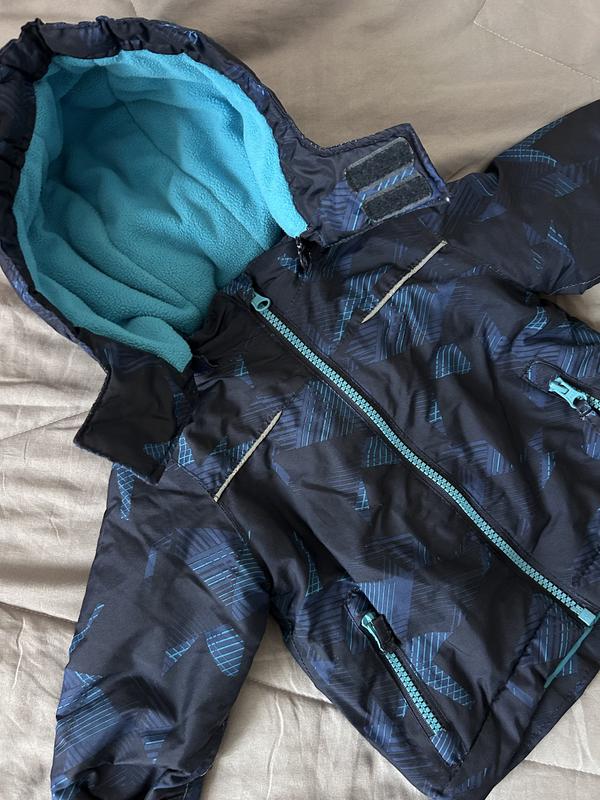 Водонепроницаемая куртка с утеплением для малыша, есть дополнительные кнопки для фиксации внутри изделия. Также капюшон отстегивается