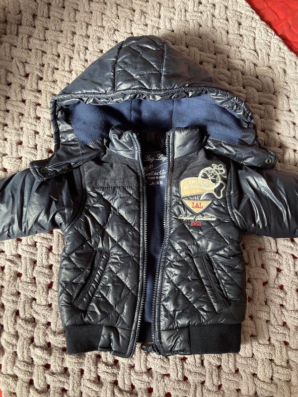 Куртка в гарному стані, 6-9 місяців, весна осінь , колір темно синій , капюшон відстібається