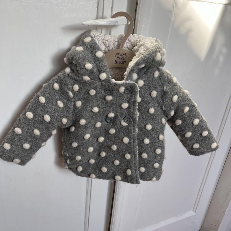 Пальто f&f 3-6 месяцев, идеальное состояние. Рукав от плеча 23см. Длина 28см. Ширина под рукавами 28см.