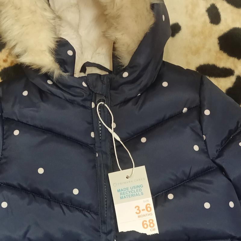 Новая красивая теплющая курточка темносинего цвета в оорошек на 68см,3-6мес,внутри искус мех,сверху водооталкивающиф болон плюс перчаточки и теплый капюшон'не отстегиаается.замеры ширина 32см'длина 3ксм,длина рукава-23си