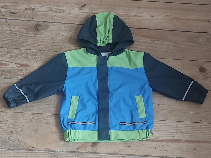 Для мальчика, рост 80/86, возраст 12-18 месяцев, имеет светло-отражающие элементы спереди, на рукавах и сзади. Куртка на замочке и липучках. Длина от плеча: 39 см; длина рукава: 31 см.