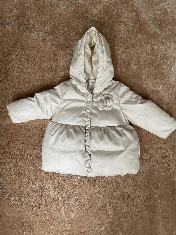 Очень красивая, теплая куртка/пуховик на девочку. Цвет айвори. Подкладка коттон. Наполнитель пух/перо. Бирка срезана. Фирма Benetton. Капюшон отстегивается. Прекрасно подойдет на температуру от +5 на флисовый человечек. Стан идеален. На возраст 6-12 месяцев. Замеры: Длина 35 см ПОГ 29 см По низу 37 см Рукав 25 см