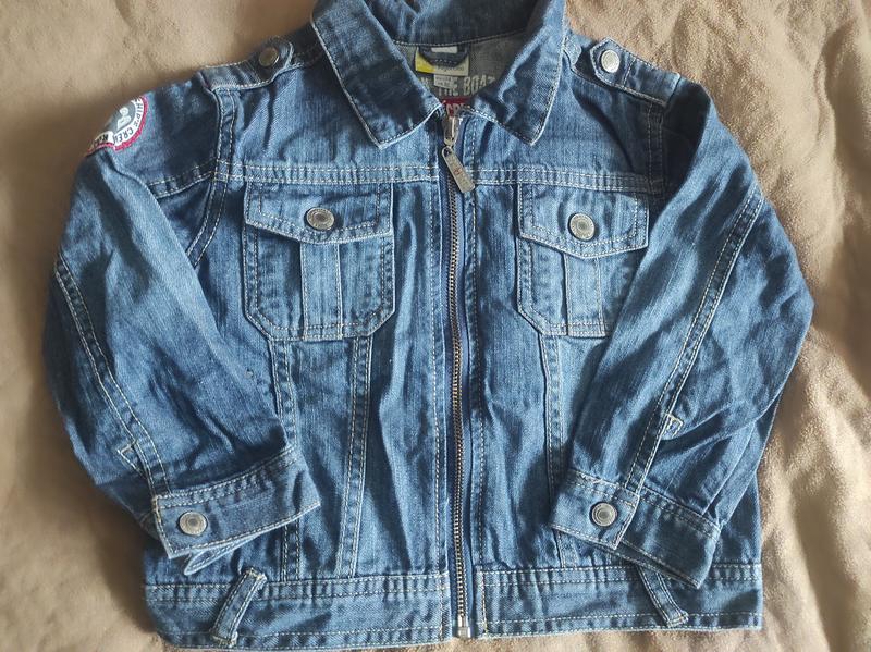 Джинсовая куртка на мальчика, тоненькая Возраст 1,5/2 года или 86/92 см (US 29) Размер рукава 33 см, плечи 28 см, длина 34 см Без пятен и затертостей
