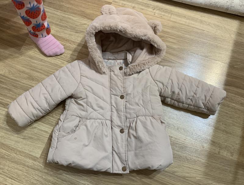 Дуже мила і гарна курточка з капюшоном ведмедиком :) На дитинці дуже гарно сидить :) Є невеличка пляма на кишені, при стірці не виводиться , ощищувати чимось не пробувала