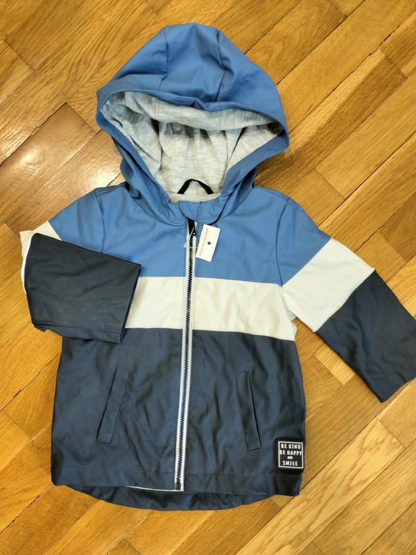 Новичка прорезиненная куртка на мальчика 6-9мисе. Длина по спине 35см, длина рукава с плечом 28см, ширина подмышками 28см, ширина по плечам 22см.