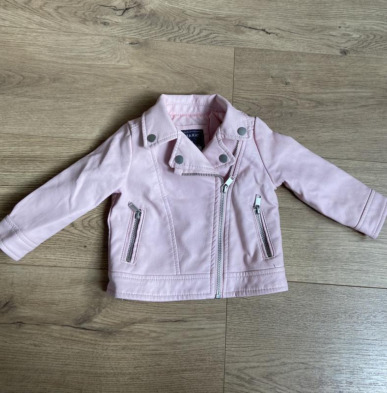 В идеальном состоянии. Заменитель кожи.Одевали максимум раз 5. Носил ребенок до 1.1 года под легкую кофточку или футболку. Очень крутая и стильная на прохладные вечера,теплую весну или осень.
