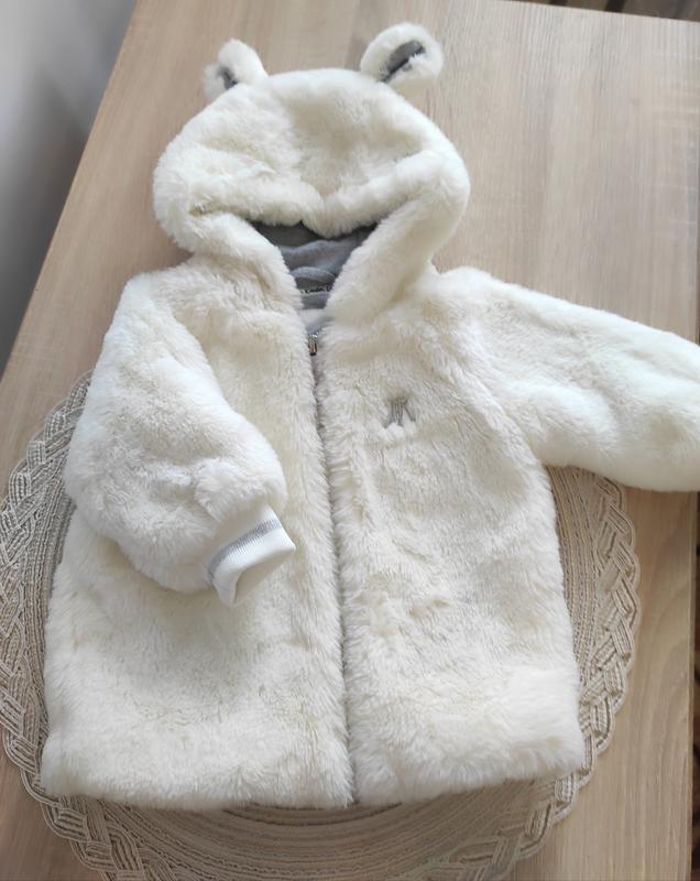 Курточка для новорожденного River Island Размер: 0-3 месяца Цвет: молочный (айвори) Материал: мягкий искусственный мех снаружи, хлопковая подкладка внутри Состояние: отличное, одевали несколько раз Теплая и нежная курточка с капюшоном и ушками 🐻идеально подходит для прогулок в прохладную погоду. Очень удобная, мягкая и стильная, от известного бренда River Island.