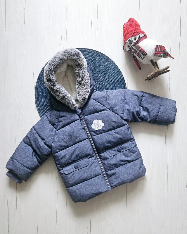 Новые теплые куртки от английского бренда George в стильном джинсовом цвете Водоотталкивающая и ветронепроницаемая ткань, мягкая меховая подкладка Размеры: 74-80см (9-12месяц Заміри 74-80см: Длина общая 40см Ширина 33см Длина рукава от капюшона (реглан) 34см Цена: 1000грн