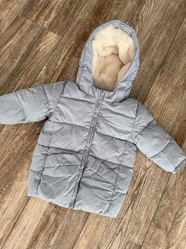 Тепленькая курточка от mango. Мы носили зимой. Стан хороший. Цвет нежно голубой, будет красивый. Размер 9-12 мес но будет дольше.