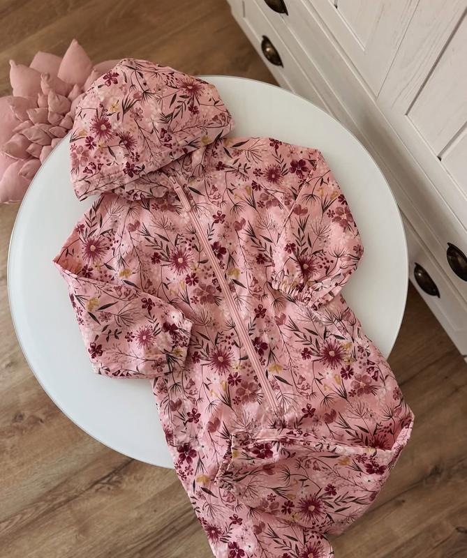 Дитячий комбінезон 🌸 Грязепруф без підкладки, легкий, для весни/літа. Колір – рожевий з квітковим принтом. 12-18 м 86р В ідеальному стані