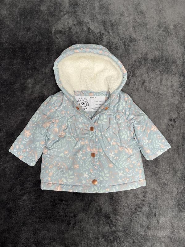 Дуже гарна, демісезонна курточка, буде на холодну весну . Розмір на 0-3 міс. Всередині мягесенька . Стан ідеальний. Якщо потрібні заміри- пишіть. Є ще шапочка на останньому фото- ціна 70 грн