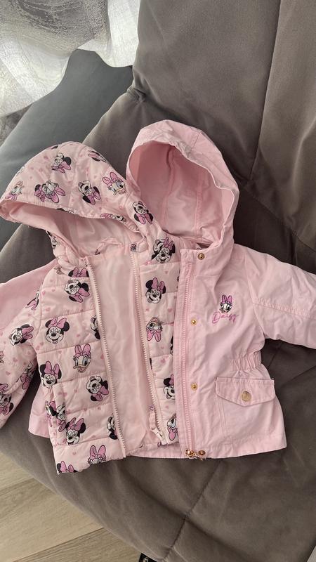 Нереально стильна і красива брендова курточка для дівчинки Розмір 80, нам хватило на довше. Десь буде до 11кг Куртка 3 в 1. Можна носити як вітровку, на теплу осінь з мікі і на більш холоднішу подвійну, все прищібається з внутрішньої сторони. Тканина водонепроникна, захищає від вітру. Стан ідеальний. Без недоліків.