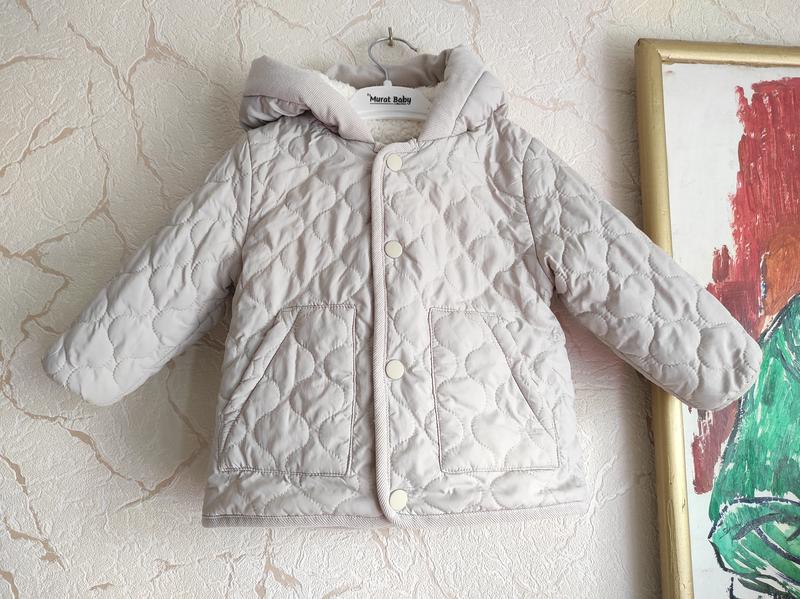 Куртка деми 6-9 мес. Внутри махра. Замеры: длина 35 см, ПОГ 31,5 см, рукав от плеча 25,5 см.