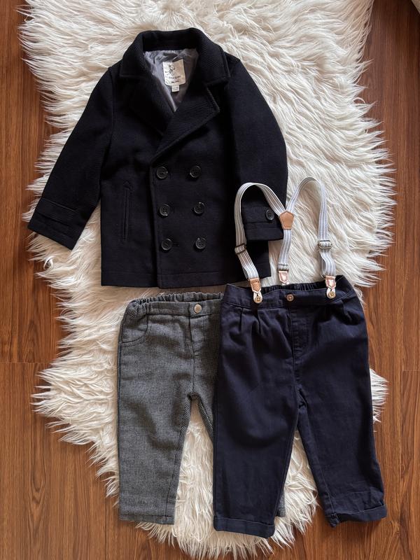 Класичне пальто темно синє двубортне + класичні брюки 9-12 12-18 80 см