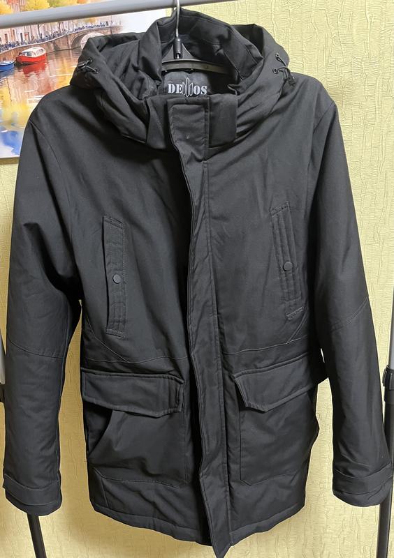 Зимова тепла куртка (парка), з штучним хутром в середині, стан ідеальний, колір чорний, розмір хл