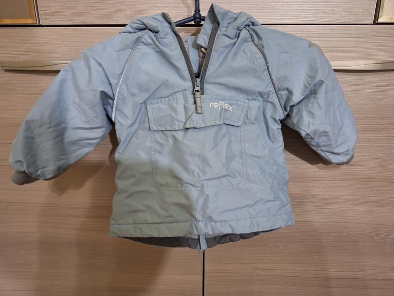 Стильная осенне-зимняя куртка на подкладке Reflex размера 86, серо - голубого цвета. Имеет практичную молнию сзади, ее легко надевать и снимать. Можно расстегнуть, когда ребенок находится в автокресле, поэтому ребенок надежно закреплен даже в куртке. Подкладка 100% хлопок. Параметры: Длина по переду - 38, Длина сзади - 40, полуширина - 34+ рукав от воротника - 36 Без повреждений или следов ношения. Имеет светоотражающие отметки. Цена - 500
