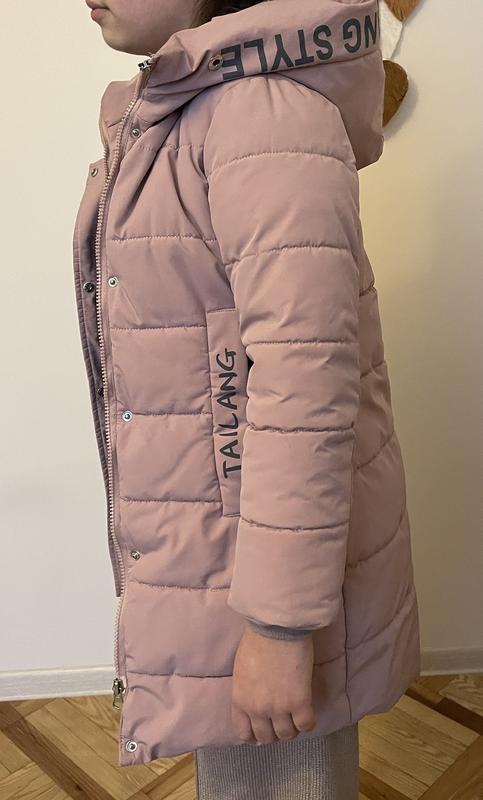Теплая стеганая куртка / пальто для девочки Стильная и удобная зимняя куртка нежного пудрово-розового цвета. Хорошо держит тепло, легкая и комфортная в носке. Характеристики: Сезон: осень / зима Длина: ниже бедер Капюшон: есть, не отстегивается Застежка: молния + кнопки Рукав: длинный Карманы: 2, на молнии Наполнитель: синтепон Цвет: пудрово-розовый Декор: стильные надписи на карманах и капюшоне Состояние: очень хорошее, без пятен, дырок или дефектов Подойдет для: повседневной носки, школы, прогулок