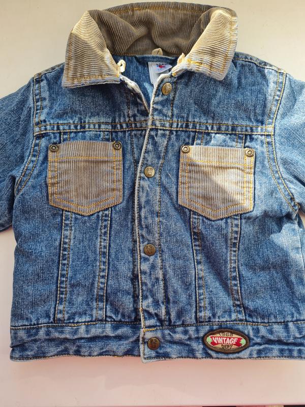Теплая джинсовая куртка для ребенка до года-полупара (80-86см) на самой куртке пишет 74, но болеемерит. Красивая грузовая вещь для вашего малыша.