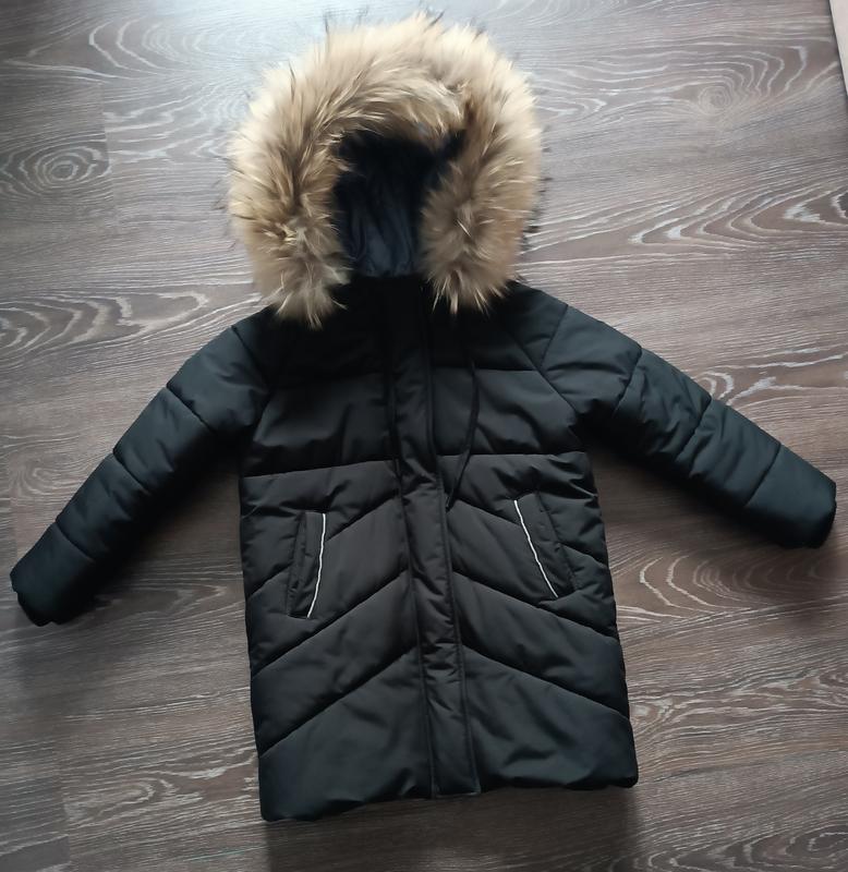 Чорна зимова куртка в ідеальному стані. Тепла та стильна. Підійде на холодну зиму. З м'якої водонепроникної тканини. Заміри надам при потребі 128-134