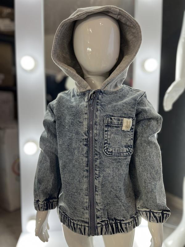 Джинсова куртка з каптуром для хлопчиків від Sinsay, є одна кишеня спереду, рукава і низ джинсовки на резинці, куртка застібається на змійку, на спинці малюнок зайчика 🐇, дуже гарна і стильна для вашого малюка 🤗