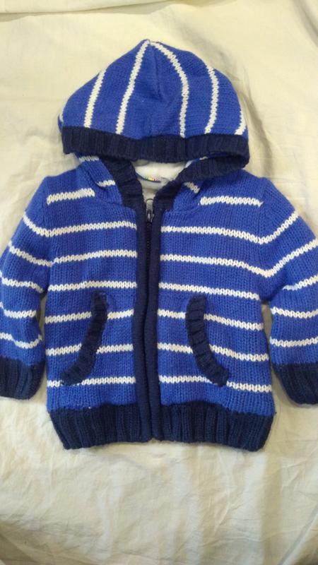 Вязаная курточка на малыша ,Lupily.Снаружи-вязаная.Внутри -на флисе.Оличное состояние.Размер-2-6 месяцев,62-68 см.Цена-80 гривен.