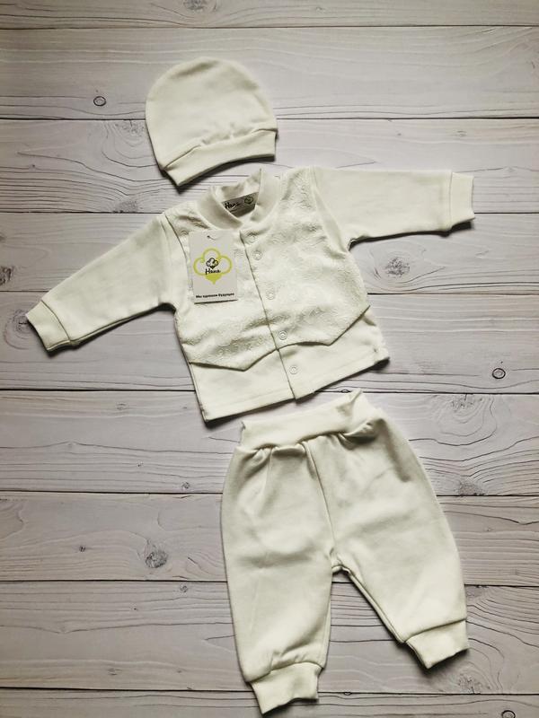 Красивый нарядный комплект 3ка,в молочном цвете.Упакованный в подарочную коробку.Часто покупают на выписку из роддома,на крестины или просто на подарки. Размер-56см Переходите на нашу страничку,у нас много красивых моделей и на малыша и на подростка. 💰Цена-300грн 🚛Отправки ежедневно Новой почтой.