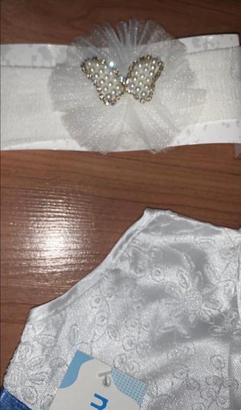 набор на крещение в наборе платье,бодик с длинным рукавом,пинетки,повязка производитель Турция новый в коробке возраст 0-6 месяцев.
