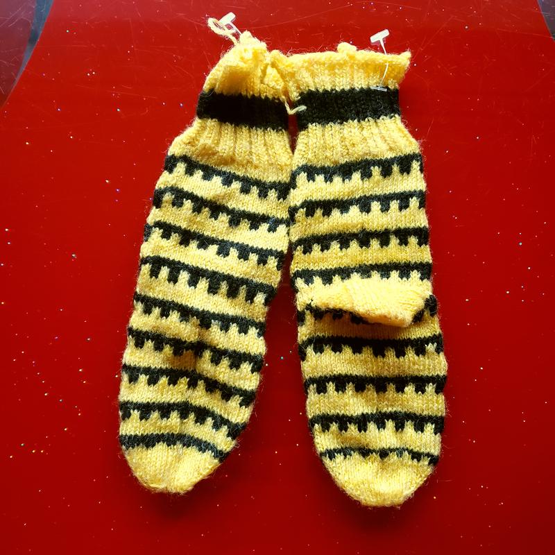 Детские теплые зимние вязаные носки носочки девочке мальчику 13-15.5см 21-25р новые Желтые, в чёрную полоску, яркие и позитивные, как пчелка)