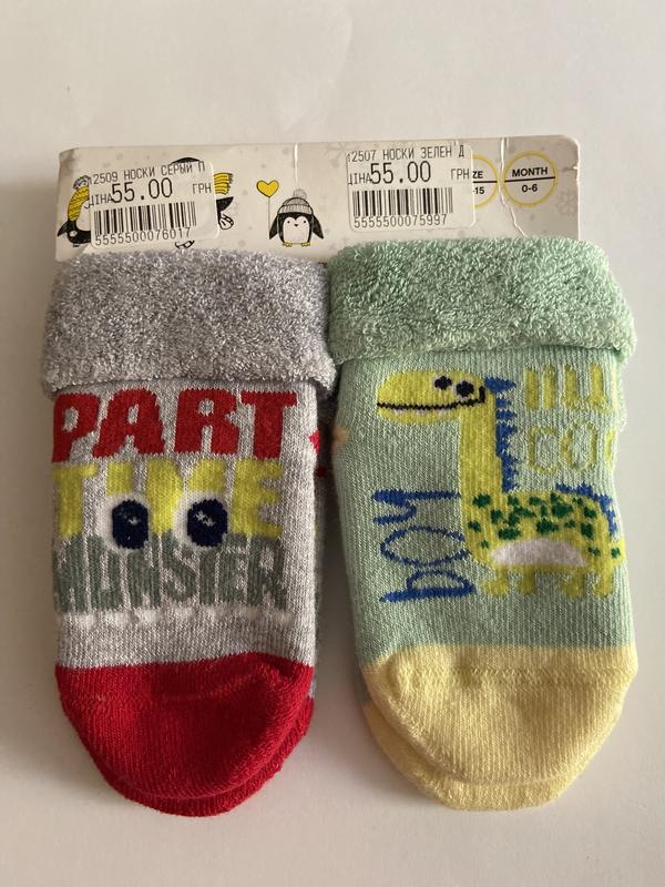 Махрові шкарпетки . Розмір 13-15р на вік: 0-6 міс Довжина стопи 9см Склад : 85% бавовна, 12% поліестер, 2% еластан З отворотами та антислизькою підошвою