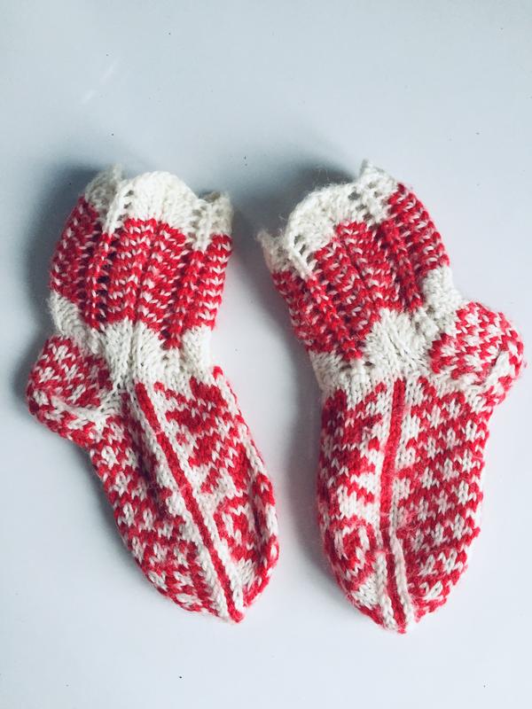 Носочки ручной вязки с орнаментом - шерсть, розовые- акрил, длина стопы в спокойном состоянии 11-11,5. До года и больше , если ножка маленькая. Зроблено не в Україні.