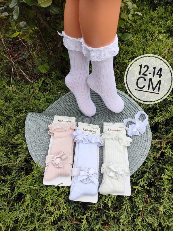 Нарядные хлопковые гольфы в рубчик. Повязочка в наборе, но более как декоративная или резиночка. Бантик пришито. ✅ 12-18 (21-23) на ножку 12-14 см, можно немного раньше Турция ТМ Katamino 80% хлопок, 18% полиамид, 2% эластан 🌿 Повна оплата 🌿 Отправка новой почтой или Укрпочта ♥️🚚