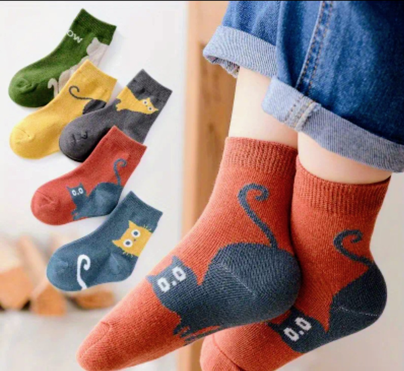Милые носки с картинками котиков для детей - мягкая полиэстера смесь. Носки до щиколотки на все сезоны с дизайном игривых котиков