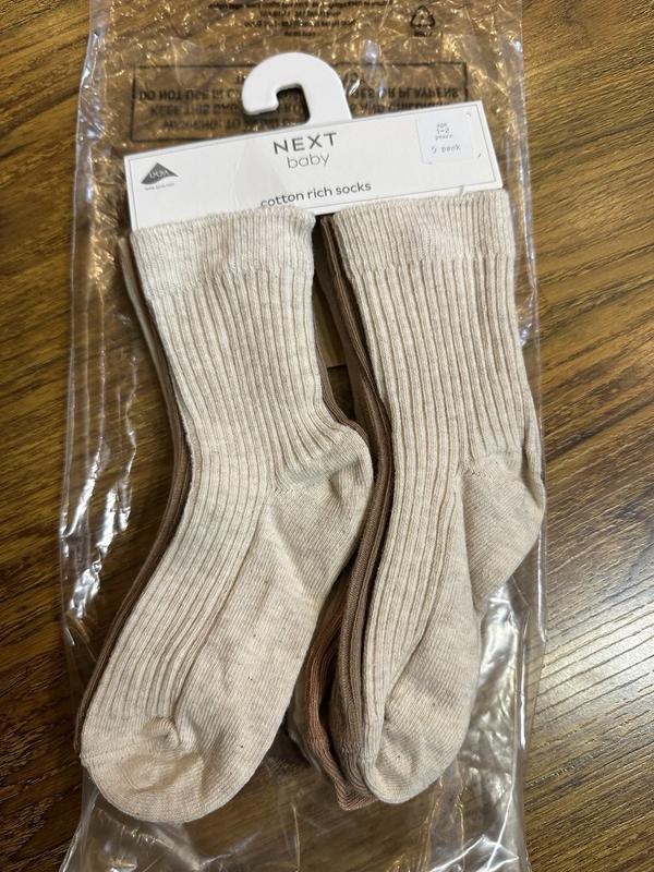 Набір нових бавовняних шкарпеток NEXT baby. П’ять пар у нейтральних бежево-коричневих відтінках. М’які, еластичні, комфортні для малюка. Упаковку не відкривала — стан нових. Підійдуть для щоденного носіння. Якість супер! Питайте, якщо потрібні додаткові фото чи заміри