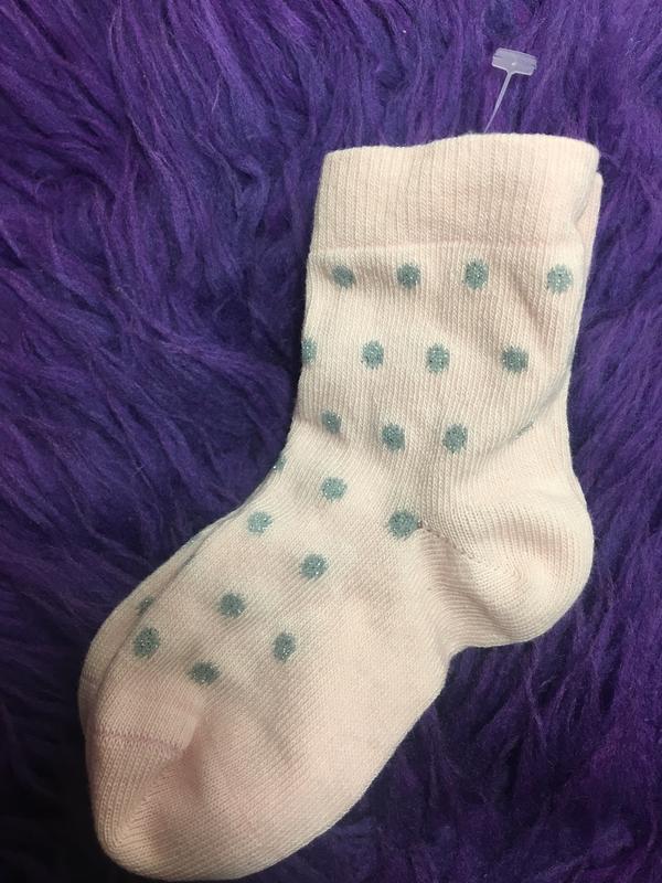 Очень красивые носочки отличного качества. Новые, без бирки, но с пластиковым фиксатором. Размер 3-5,5 (19-22)