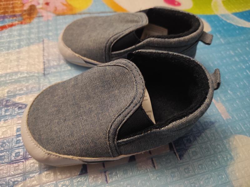Мокасини на 0 - 6 місяців. Підошва тканинна з нанесеними прорезиненими колами. Детальні заміри на фото.
